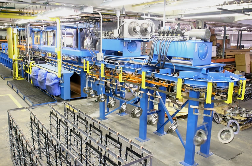 Electroless nickel is useful for maintaining dimensions and coating irregular shapes where uniform assembly tolerances are required. The color of electroless nickel is similar to stainless steel. Electroless nickel plates uniformly in recesses and cavities and does not build up on edges. Corrosion resistance in electroless nickel is good for coatings over .001″ thickness. Medium phosphorus electroless nickel is the most commonly used coating. High phosphorus is used primarily for increased corrosion resistance and in food grade applications. Mid and high phosphorus electroless nickel deposits are hard as deposited (HRc40-45). These are hardened by baking to produce a coating similar in hardness to hard chromium (HRc 65-70).